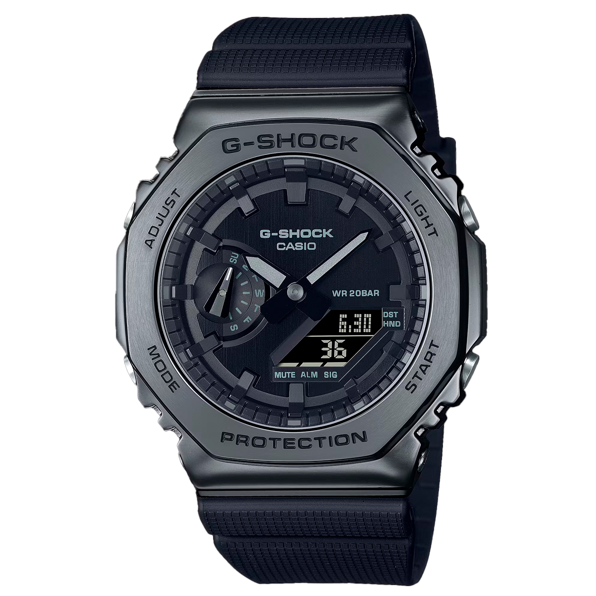 O G-SHOCK Black Metal combina força e elegância em um design totalmente preto de alto impacto. Com moldura metálica em revestimento iônico preto, o modelo transmite sofisticação e robustez em cada detalhe. Disponível nas versões GM-2100, com formato octogonal, ou GM-110, com caixa redonda ampla, ele mantém o estilo icônico da linha em uma estética moderna e versátil. Um relógio que une luxo, resistência e personalidade — pronto para acompanhar qualquer ocasião.
