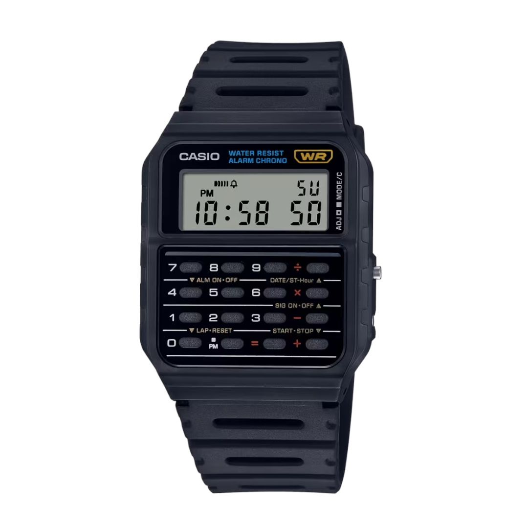 O Casio CA-53W-1 é um ícone retrô que combina estilo e utilidade em um design leve e funcional. Famoso por sua calculadora embutida, o modelo traz 8 dígitos e teclas responsivas que tornam simples resolver contas rápidas a qualquer momento. Seu display digital de alto contraste facilita a leitura, enquanto recursos como cronômetro, alarme diário, calendário automático e hora dupla garantem praticidade no dia a dia. Resistente e confortável, é um relógio que atravessa gerações mantendo seu charme original e confiabilidade.