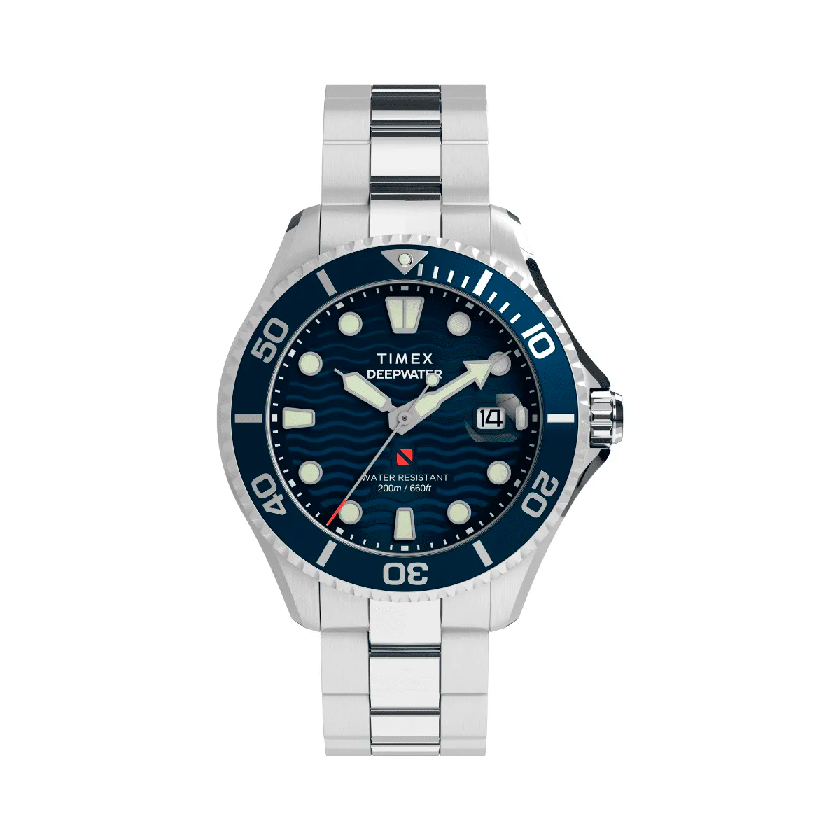 O Timex Deepwater Meridian 200 TW2W81900 é um relógio criado para quem exige resistência e estilo em qualquer cenário. Com caixa de 44 mm em aço inoxidável e mostrador azul de alta legibilidade, o modelo combina elegância esportiva e presença marcante. O movimento quartzo assegura precisão confiável, enquanto o vidro de safira oferece excelente proteção contra riscos. Com pulseira em aço inoxidável e resistência à água de 200 metros, é um relógio versátil, preparado para o uso diário e para aventuras em ambientes aquáticos.